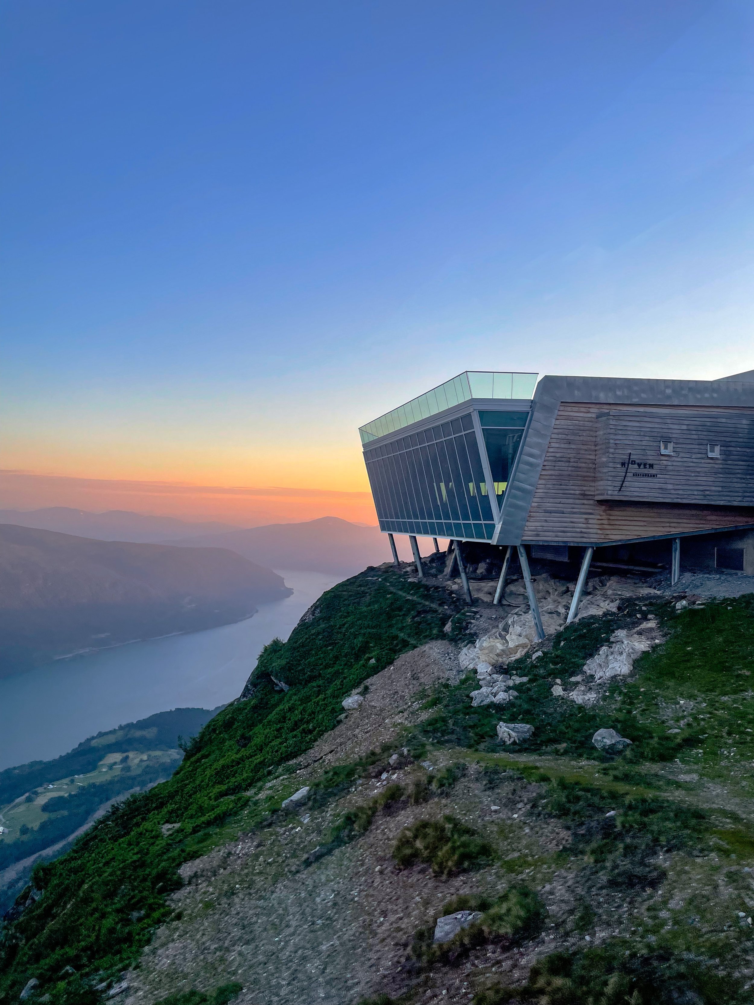 On the 20th of May 2017, one of the greatest and most spectacular tourism projects in Norway opened. Her Majesty The Queen undertook the official opening. The cable car conveys visitors from the fjord to the top of Mt Hoven (1 011 m) in just five minutes. From the Fjord Station, you start the ascent with the Cable Car to Mt. Hoven (1011 m). After 5-7 airy minutes you arrive at the Mountain Station, and Hoven Restaurant where you will have a 210-degree panoramic view overlooking Mt. Skåla and Lake Lovatnet in the east, Jostedalsbreen Glacier and Olden in the south, and the Nordfjord that winds its way towards Stryn in the west. From Hoven, you can explore the mountain on your own in a comprehensive network of trails, or with a guide. On foot in the summer, or skiing or snowshoeing in winter. The possibilities are many – the choice is yours. Find out more about the project.